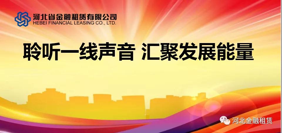 日前,河北省金融租賃有限公司(以下簡稱“河北金租”或“公司”)在武漢舉行員工座談會,公司董事長徐敏俊、副總裁李永德等與醫(yī)療健康、工程裝備等業(yè)務團隊負責人和一線業(yè)務經(jīng)理共同座談,在持續(xù)三個多小時的時間里,業(yè)務經(jīng)理們踴躍發(fā)聲,實事求是提建議,獻計獻策謀發(fā)展,互動交流解疑惑,在面對面的互動中搭建了心與心交流的橋梁。