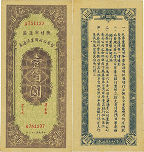 抗日戰(zhàn)爭爆發(fā)后,1937年9月下旬,八路軍第一二零師進入晉西北地區(qū),創(chuàng)立了晉西北抗日根據地,建立了興縣農民銀行。到1938年12月,開辟了以大青山為依托的綏西、綏南、綏中三塊游擊根據地,并逐步同晉西北根據地連成一片,構成晉綏抗日根據地。1940年5月,以興縣農民銀行為基礎,成立了晉西北農民銀行,后改為西北農民銀行,發(fā)行西北農民幣,流通于晉綏地區(qū)。后晉綏邊區(qū)與陜甘寧邊區(qū)統一為西北解放區(qū),該行與陜甘寧邊區(qū)銀行合并,統稱西北農民銀行,西農幣成為整個西北解放區(qū)統一本位幣。從1940年5月-1948年11月,西北農民銀行共發(fā)行貨幣15種面額,26種票樣,約3.8億張,合計約為6439億元。