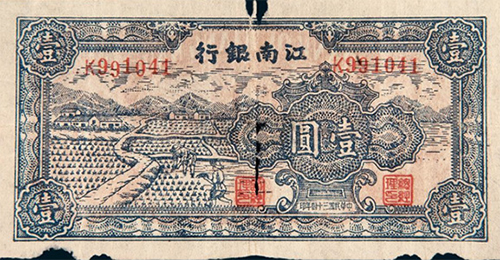 淮南銀行1942年成立,行址設于江蘇淮安盱眙縣,發(fā)行淮南幣通行于淮南地區(qū)各縣。1945年8月與淮北地方銀號、江淮銀行、鹽阜銀行、淮海銀行4個地方銀行合并組成華中銀行。