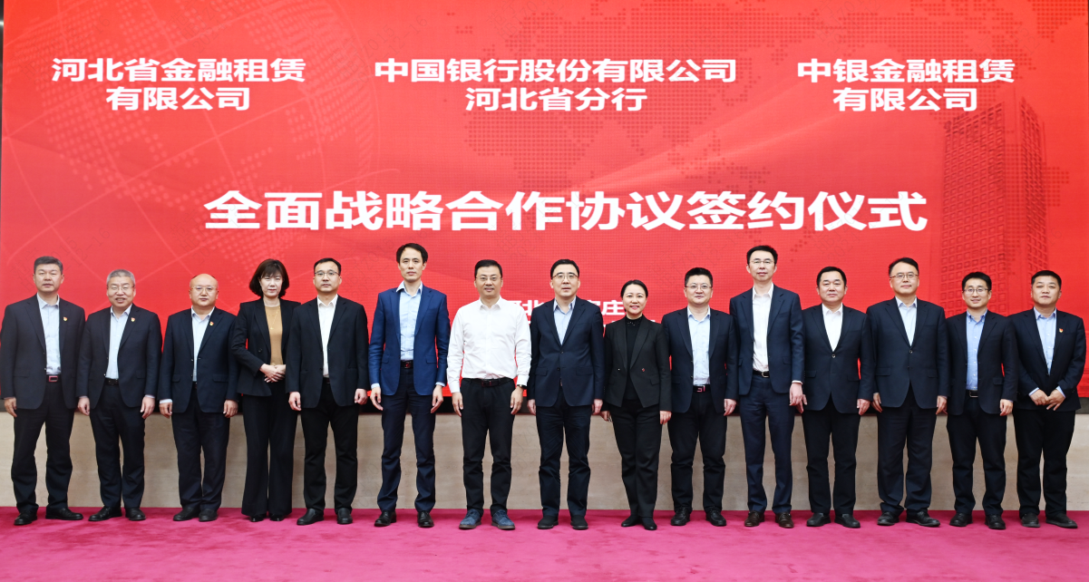 12月16日,河北省金融租賃有限公司(以下簡稱“河北金租”)與中國銀行股份有限公司河北省分行(以下簡稱“中行河北分行”)、中銀金融租賃有限公司(以下簡稱“中銀金租”)在石家莊簽署全面戰(zhàn)略合作協(xié)議。河北金租董事長徐敏俊、中行河北分行行長段忠輝、中銀金租總裁張麗濤等出席簽約儀式。
