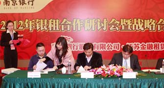 2012年2月21日,我公司代理總裁徐敏俊攜總裁助理朱彬、李寧生參加了南京銀行主辦的2012年全國(guó)銀租合作研討會(huì)。會(huì)上,公司總裁助理兼金融部總經(jīng)理朱彬就公司的已有經(jīng)營(yíng)業(yè)績(jī)、戰(zhàn)略發(fā)展布局、客戶資源定位、與南京銀行合作經(jīng)驗(yàn)、未來融資需求…