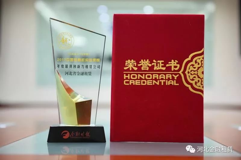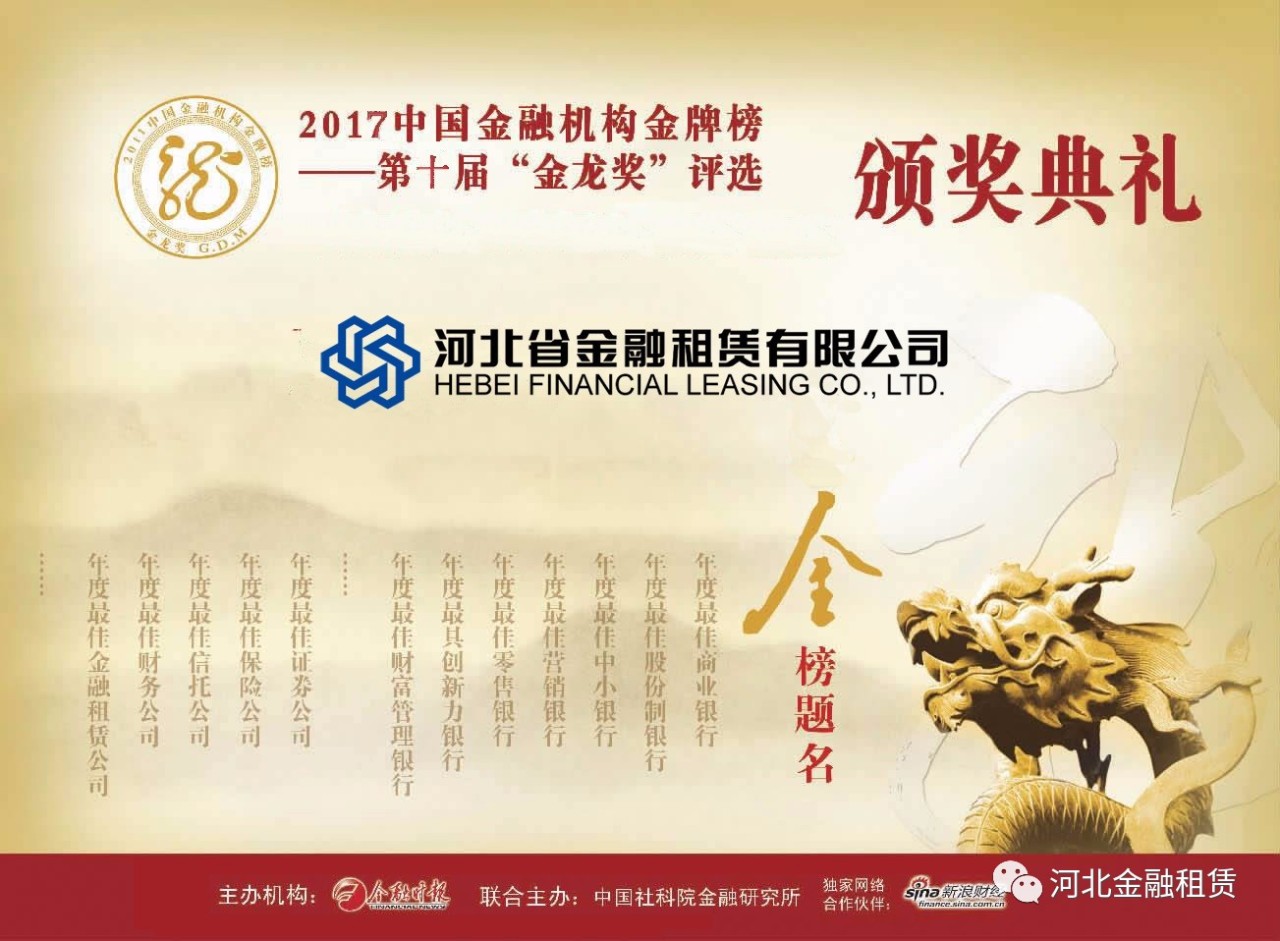 近日,《金融時報》2017年會暨中國金融機(jī)構(gòu)金牌榜頒獎盛典在京舉行,此次頒獎盛典中,河北省金融租賃有限公司(以下簡稱河北金租)榮膺最具創(chuàng)新力租賃公司獎項(xiàng)。