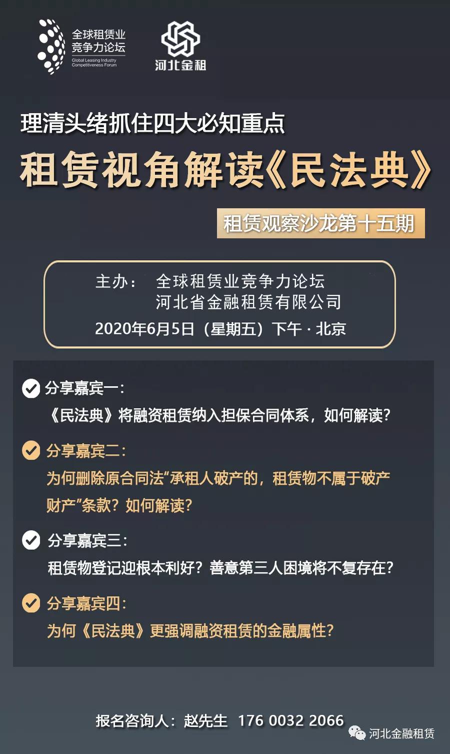 《中華人民共和國民法典》近日正式公布,標(biāo)志我國“民法典時(shí)代”到來?!睹穹ǖ洹飞婕岸囗?xiàng)與融資租賃密切相關(guān)的法律條款,擴(kuò)大了動(dòng)產(chǎn)擔(dān)保合同的范圍,將融資租賃納入擔(dān)保合同,將對融資租賃業(yè)的經(jīng)營活動(dòng)產(chǎn)生深遠(yuǎn)影響。 6月5日下午,全球…